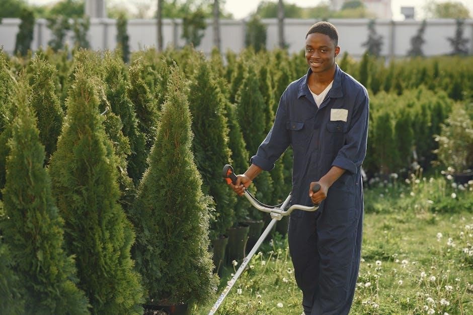 Before operation, proper assembly is crucial for safe and effective trimming. This involves securely attaching the handle and shaft components, following the detailed steps outlined in this manual.