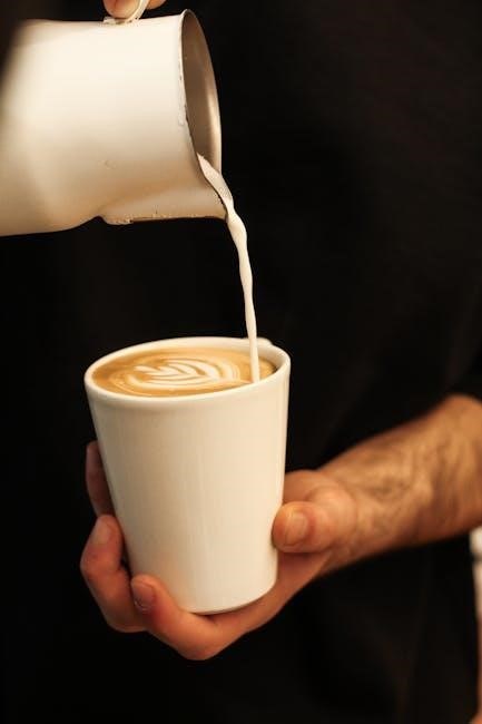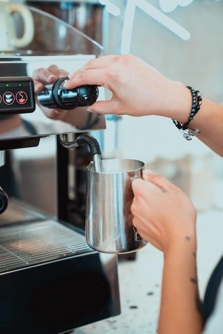 The manual details proper wand positioning, aeration techniques, and temperature control, ensuring consistently steamed milk. Understanding milk science – fat content and protein structure – is also covered.