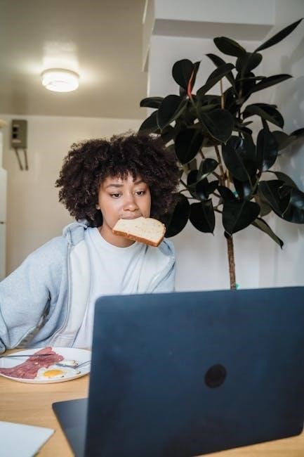 The free PDF emphasizes avoiding processed sugars and prioritizing whole, unprocessed foods. Smoothies blending fruits, vegetables, and protein powder are also common, ensuring a quick and nutritious start to the day. Portion control is key, focusing on balanced macronutrient intake.